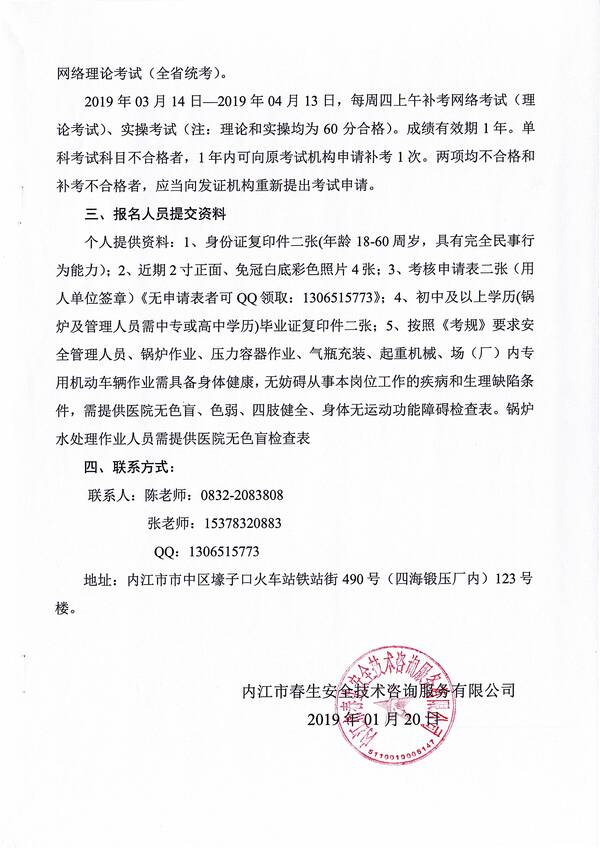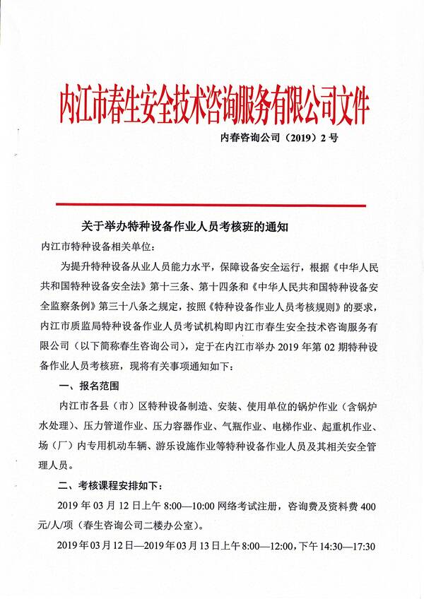 2019年第二期特種設(shè)備作業(yè)人員考核培訓(xùn)班的通知