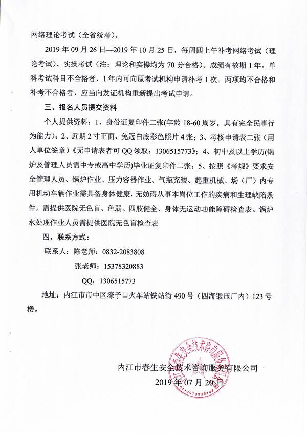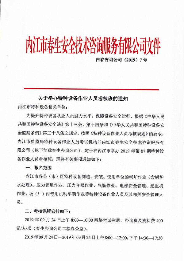 2019年第七期特種設(shè)備作業(yè)人員考核培訓班的通知